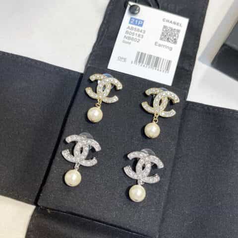 2021新款CHANEL香奈儿双c满钻圆形珍珠耳钉耳环¥300.00 -