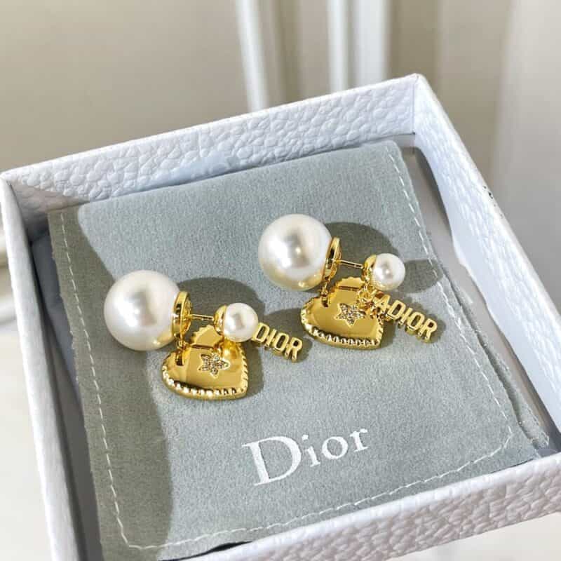 新品原单货配送全套新迪奥正品包装新款DIOR迪奥大小珍珠桃心耳钉耳环专柜一致黄铜材质