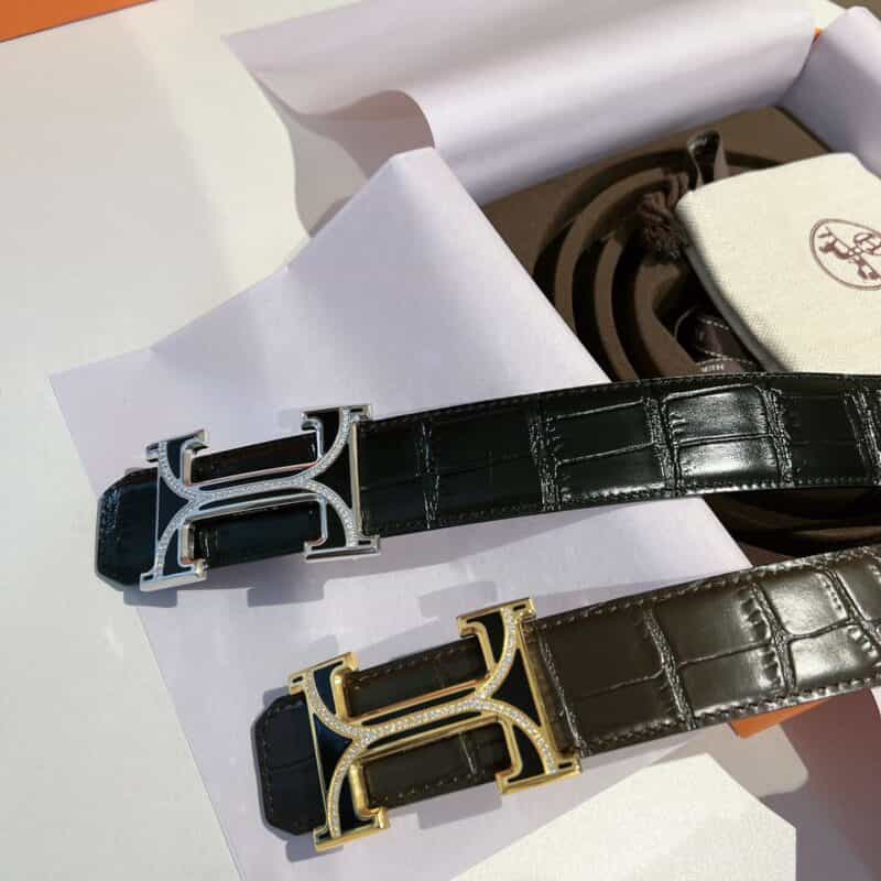 35mm精致宽度带Hermes给您满满高奢感,独到之处精心选材精心制作,精钢镶嵌奥地利水晶钻与树脂工艺相融合打造的金属扣,贵气感十足,腰带皮质与手工艺也不含糊,采用意大利进口牛皮压制纹理,每一针每一线都很精湛,整体质感超棒