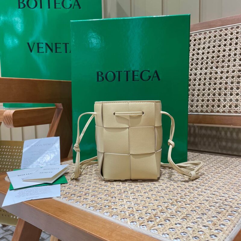 CASSETTE水桶包继续延续极简的设计理念,整个包身采用大格的编织元素,比小格编织更为简约大气时尚!把经典的编织元素和抽绳水桶结合在一起,使造型简单得来又有型 ,低调得来又有腔调。别看它小小的哦,容量特别大滴,放手机会露出一丢丢,但是不影响使用。可爱小巧又实用的小水桶,必须入手呀!