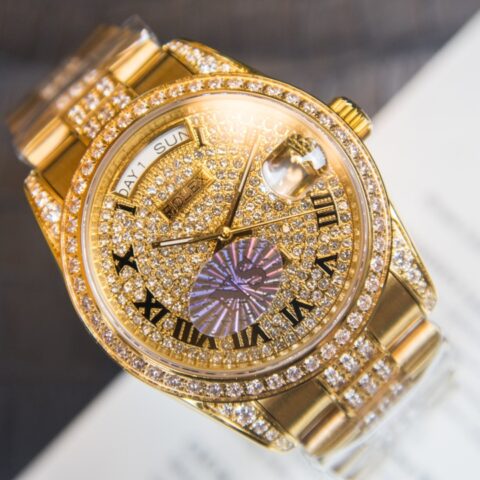 NS-Factory 劳力士日志满钻系列,性价比力作!!极致奢华的表盘设计,体现的是瑞士制表业的工匠精神,一颗颗钻石,犹如漫天繁星,耀眼动人。搭配原装进口日本机芯,瑞士2836机芯 走时精准,稳定无误,采用蓝宝石玻璃 永不刮花。表带也采用镶钻工艺,奢华大气!! 绝对是不容错过的一款经典腕表