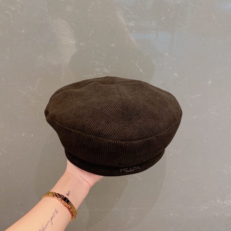 PRADA普拉达2022秋冬新款贝雷帽,灯芯绒贝雷帽,多片拼接,头围57cm