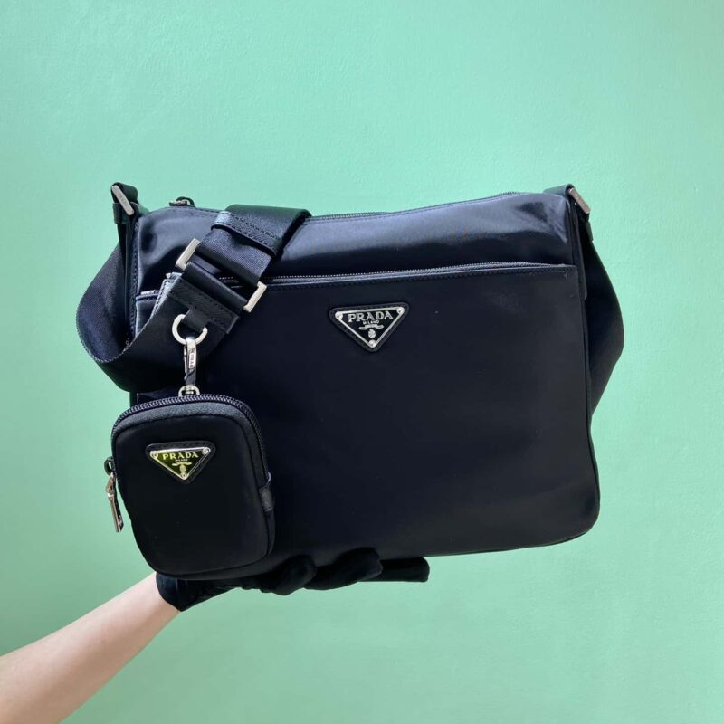 🎉升级版🎉1BC421升级版到货👏🏻👏🏻原单货,采用进口织物单肩包,可调式织物肩带,肩带上配有一千可拆卸的小包。精钢配件,三角形珐琅铭牌