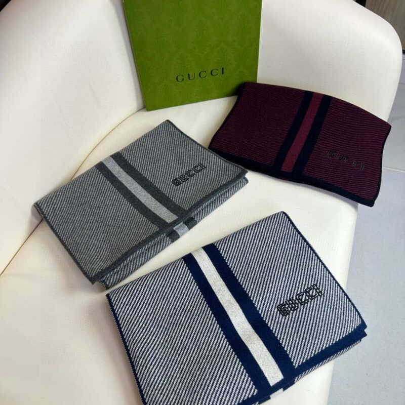 GUCCI 爆款上新 高端男士围巾👍【经典条纹】独家牛货🐂 简单的Logo,体现出高品味 冬季必备!这种精品是市场上及其少见 的围巾针织,亲肤保暖 低调奢华的配色,非常柔软舒适,卖一条少一条的好货‼️ 100%进口针织羊绒 🎉🎉尺寸:180*32三色