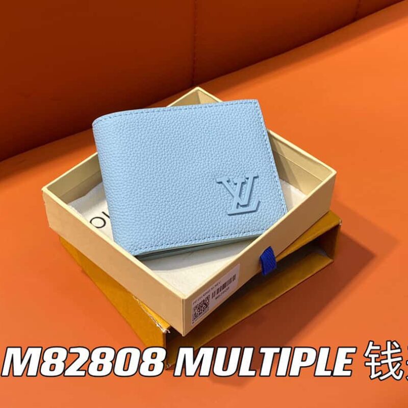 【原单精品】M82808浅蓝全皮 短款西装夹系列 MULTIPLE 钱夹 m82273 82274 本款 Multiple 钱夹出自 Aerogram 系列,为柔软牛皮革点缀金属质感 LV 字母。精巧构型囊括卡片夹层和隔层,可轻松置于多数口袋。尺寸:11.5 x 9 x 1.5 厘米