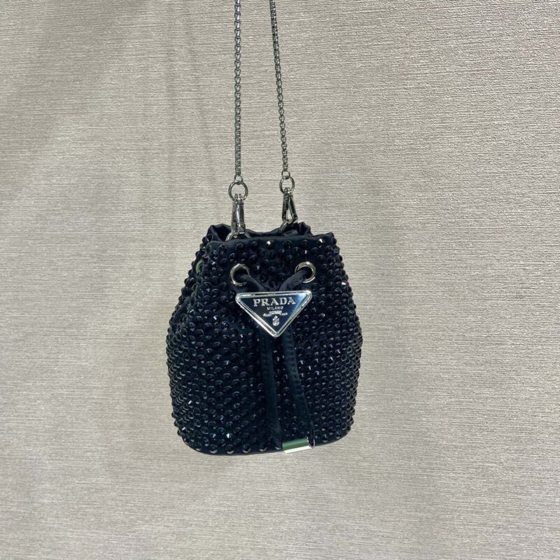 这款mini小水桶采用进口仿水晶和缎面材料组合,涂珐琅金属三角形徽标装饰开合设计。金属铁琏可斜跨。太可爱了😍,bling bling的效果非常吸眼,可仙可酷,难道你不心动😙😙,美妞们。赶紧入手吧。太美太可爱了😋😋
