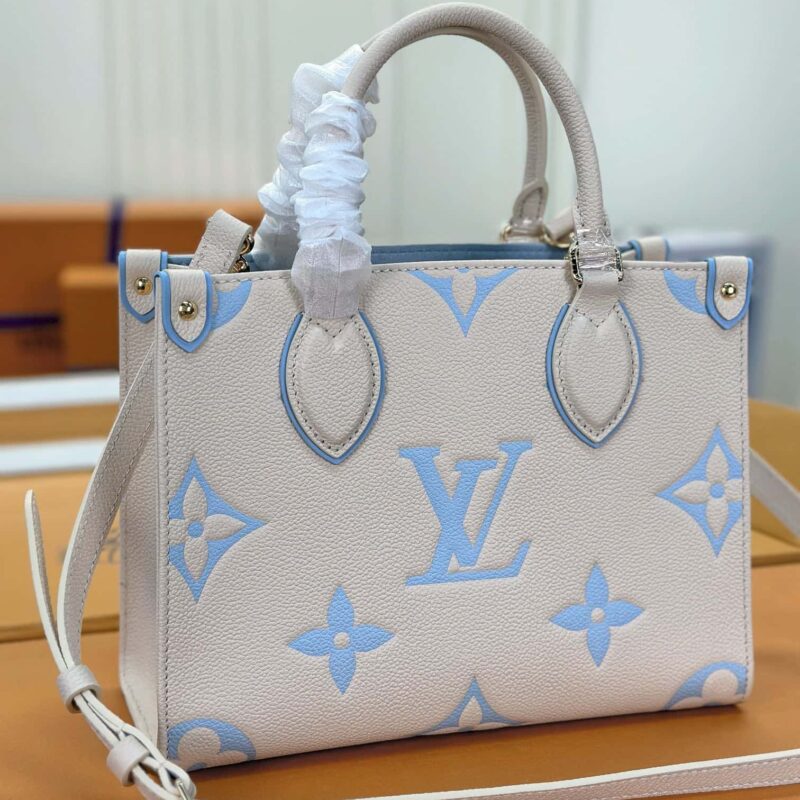 本款 OnTheGo 小号手袋为细腻粒面皮革压印 Monogram 图案,以粉彩色调释放柔和气息。皮革手柄和纤长肩带提供多种背携体验。